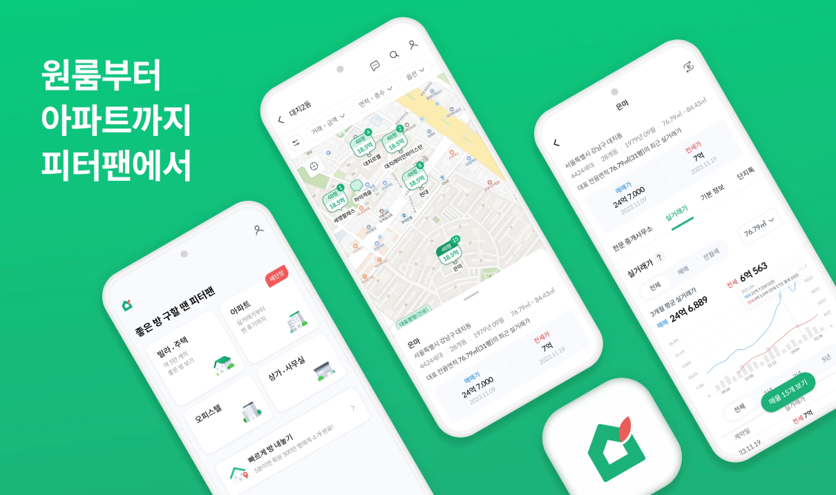 부동산 앱, 원룸 구하기, 오피스텔 찾기, 아파트 매물, 직거래 부동산, 피터팬의 좋은방 구하기